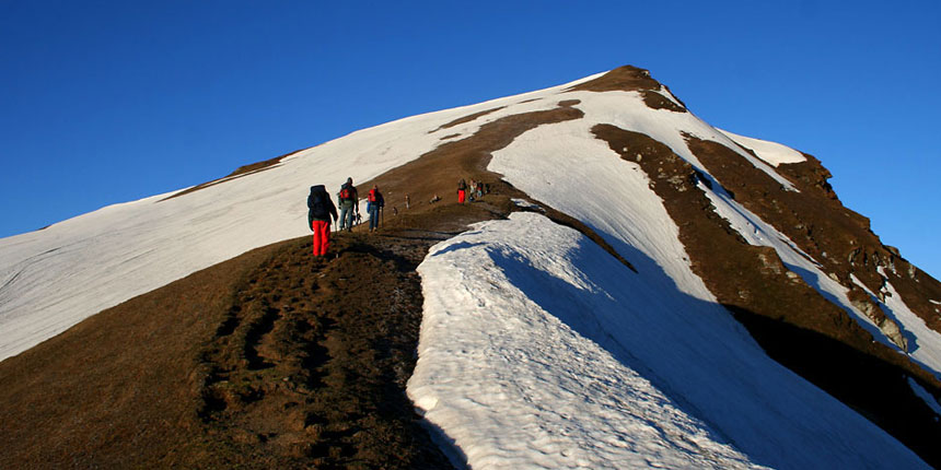 Nagaru to Biskeri Thach via Sar Pass ( 6-8 hours) Make an early start, as the climb is steep through the snow.Sar pass and the elevated peaks of the Tosh valley will be visible from here.Reach the top and enjoy the stunning view. After that the slide is the most fun and completely harmless as long as some precautions are taken. The slide takes one as far as a kilometre to a gentler slope of the valley.Arrive at the Valley after walking for an hour at the campsite of Biskeri Thach, which is reached after crossing a few streams.? Overnight at Biskeri Thach.